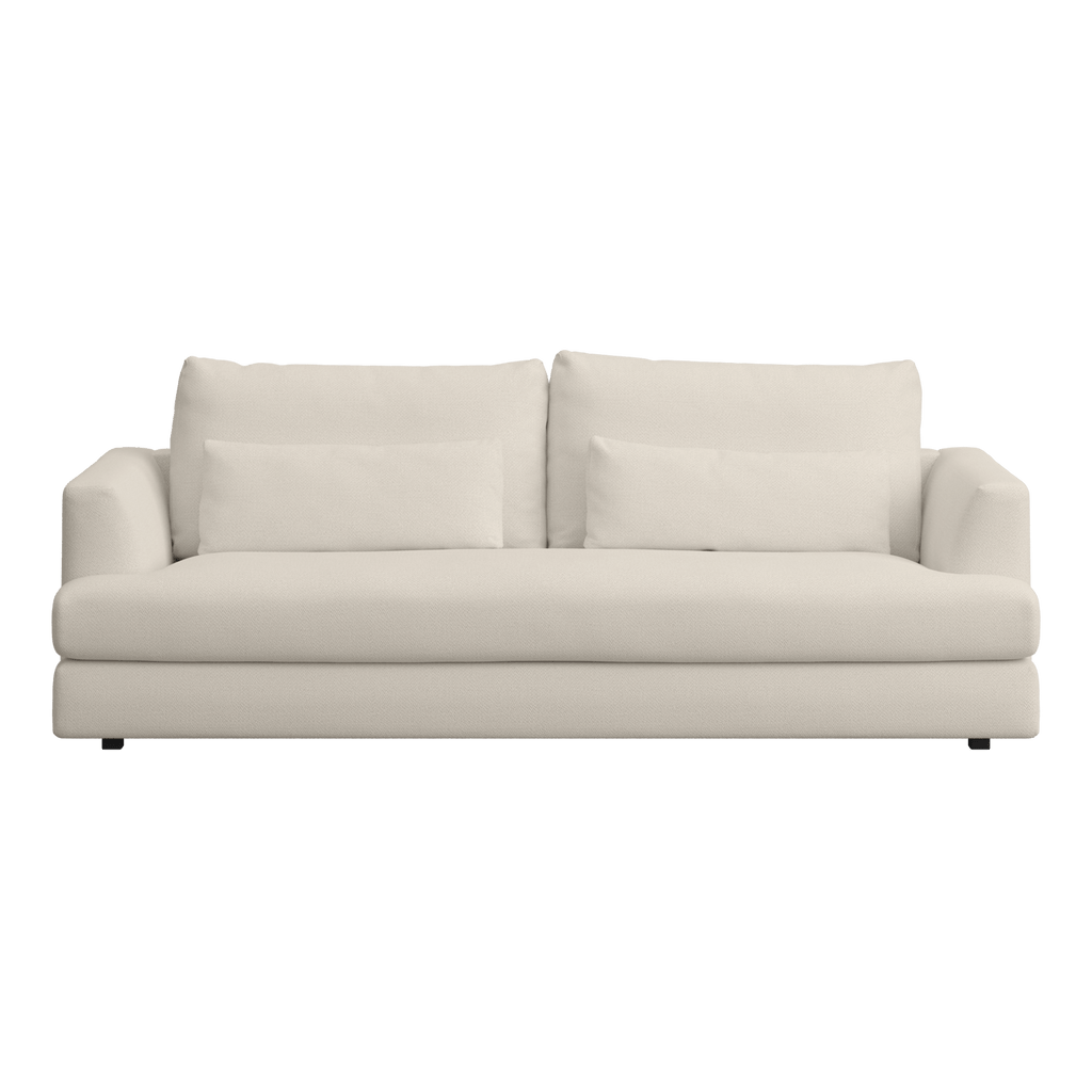 The Elba sofa is a deep, generous sofa with long, extra-thick seat cushions made from a combination of foam which holds the form and a top layer of feather which creates a wonderful softness. A sofa you just want to sink into. The back of the sofa is a perfect height and the sofa comes compete with additional lumber cushions which are both stylish but add additional support and comfort. Available in a variety of fabrics, our favourite is certainly the boucle which has a wonderful refined look since the bobbles are a small neat size.
