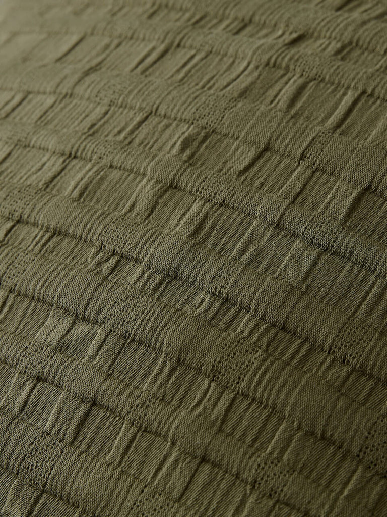 The Beja range of cushion covers and throws make layering your bed easy. Designed with beautifully textured pattern, these super soft textiles provide an abundance of rich warmth to the layering of your bed. Finished with a heavy fringed edge the overall look is one of sheer luxury and sophistication. Choose from two different colours: soft putty or rich khaki and three different sizes so you can curate your own style accordingly.