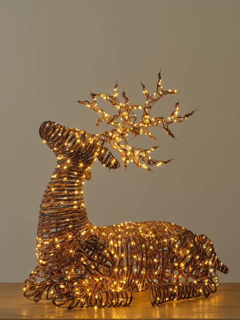A simply magnificent collection of Indoor/Outdoor light up Christmas Reindeer. We have selected here a collection of 3 reindeer that look equally attractive when unlit as when lit. The brown wicker effect base is durable and perfect for outdoors and complimented with a vast number of micro LED warm white lights. Available in good sizes, the large is a real statement piece but if you want to make a real impact on your neighbourhood the set of 3 simply cannot be beaten!