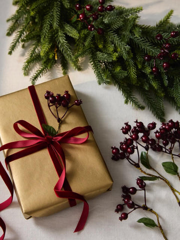 A Christmas mantlepiece | 8057581338848 | wide-burnished-gold-velvet-ribbon | 10m Burnished Gold Velvet Ribbon | Christmas, Christmas Gift Wrap & Ribbon, group:velvet-ribbon | true | £12.00 | Layered Lounge | Wrapping Paper & Ribbon |