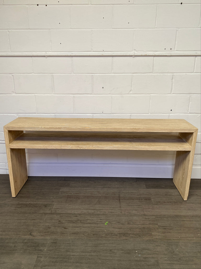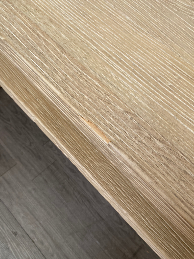 One of our Beacon Console Table was used in a photographic shoot and has sadly been damaged as you can see from the image. There is a chip to the rear of the surface and a superficial crack underneath. Otherwise the item is in good condition with a simple design and made form reclaimed elm for a lovely aged look.