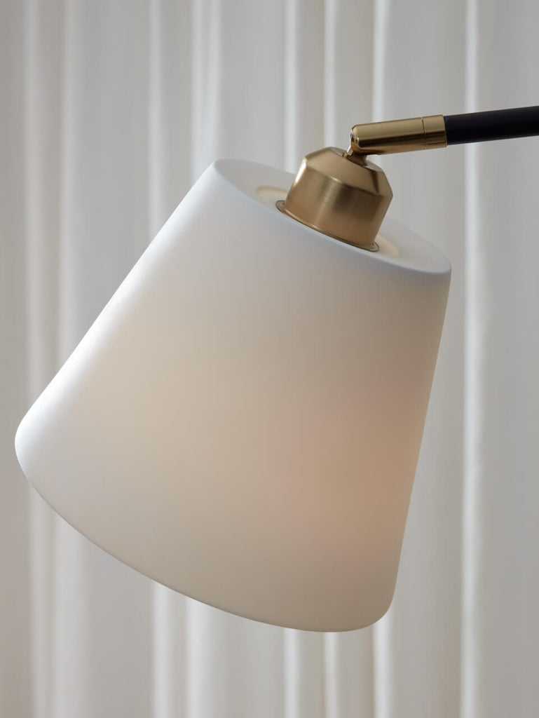 The Hoshi Black Floor Lamp has an elegant silhouette, combining matt black metal with a stunning Porcelain shade and brass finishes. A contemporary look which maintains a prefect elegance. Ideal for creating that cosy nook in your home.