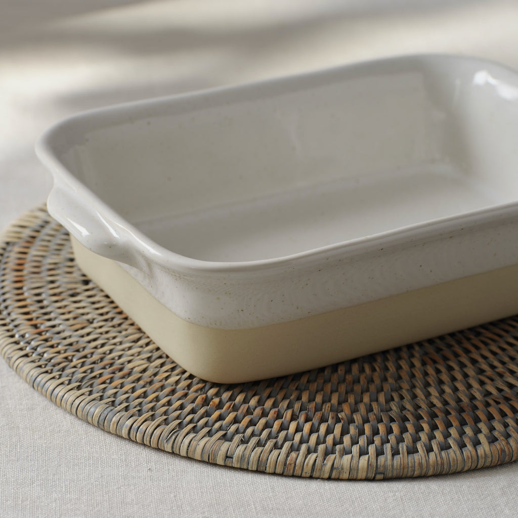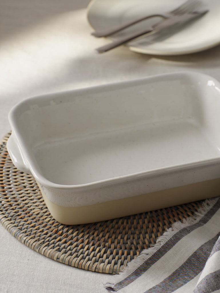 For straight from oven to table cooking you cannot go wrong with these cream stoneware baking dishes. The two tone finish with matt cream base and speckled glazed upper is a stylish look. Perfect for everyday use. A durable baking dish made in Portugal from high quality stoneware.