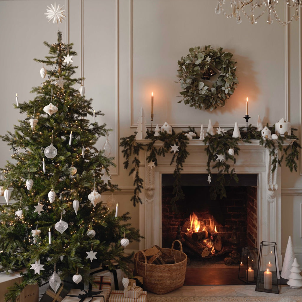 | A Christmas mantlepiece | 8047667380448 | small-white-ceramic-tree-jar | Small White Ceramic Tree Jar | Ceramic Decorations, Christmas, Christmas Room Decorations, Christmas Table | true | £17.00 | Layered Lounge | Ceramic Decorations |
