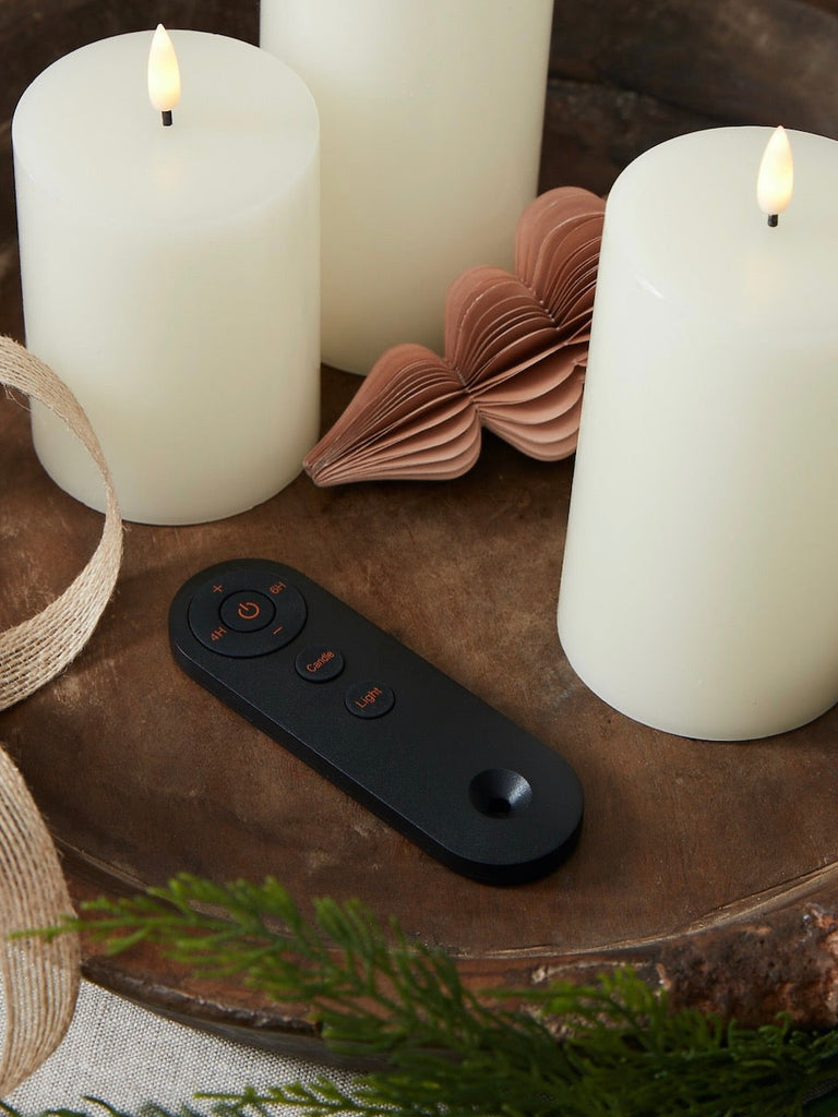 | For anyone who has lanterns in their home, these LED pillar candles are an absolute must. Made with a realistic wax finish, the set of three comes with a remote. The inbuilt timer ensures you never have to remember to blow out your candle flames again |