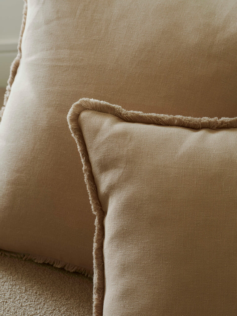 Made from quality European flax linen in Portugal, our Maria Sand Fringe Cushion Cover is an ideal base for layering your sofa. Available in two sizes, this product has a base of soft natural sand with a fringe trim. Layer with our Areia Throw for an additional touch of natural styling.