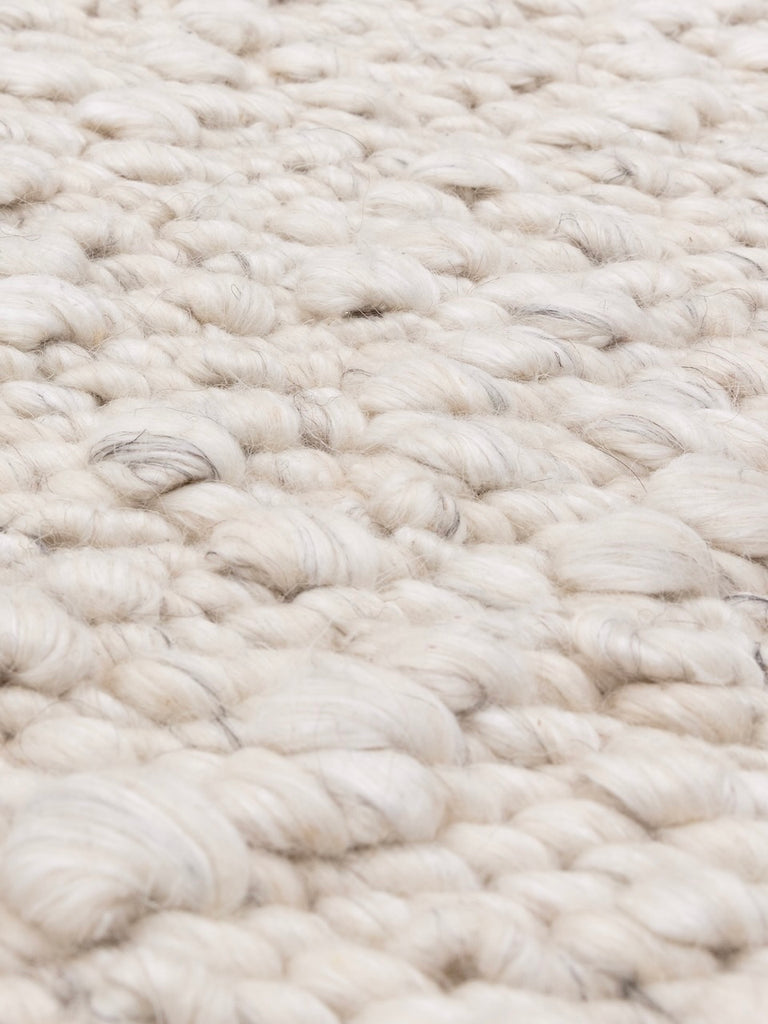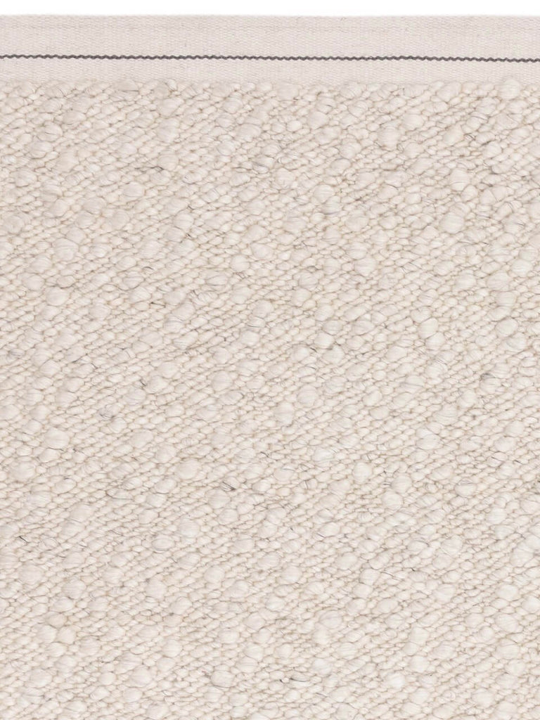 A beautifully chunky boucle style rug created using undyed natural and thick yarns. Featuring varied sized boucle weaves for added texture this rug feels absolutely fabulous and soft under your feet. Finished with a wide border with detailed stripe which adds a smart touch, this high quality rug also has a smart woven and edged back to assist with anti slip.