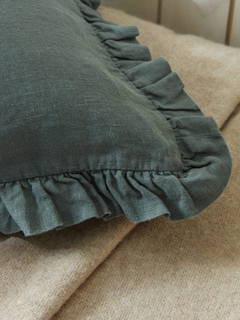 We love linen for its relaxed natural properties. A wonderful way to style your sofa or bed, the rich forest green cushions are finished with a fabulous quality frill for that informal yet on trend look.